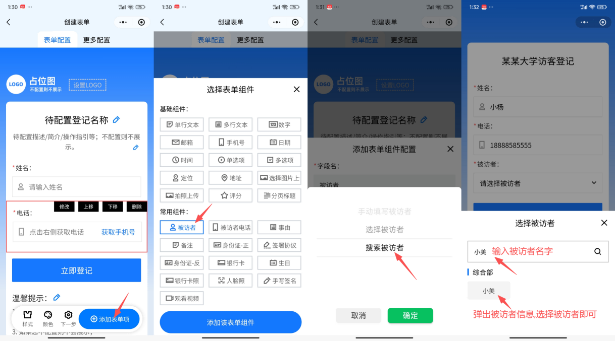 访客登记表单如何实现输入被访者自动弹出选择成员?